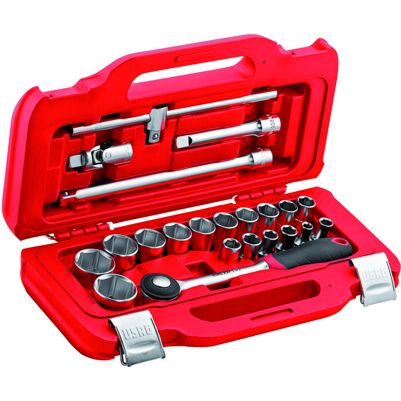 ASSORTIMENTO IN CASSETTA MODULARE CON BUSSOLE ESAGONALI (22 PZ) 601 1/2 J22 Contenitore compatto in materiale plastico Maniglia ergonomica integrata Doppia clip di aggancio in metallo Incluso cricchetto reversibile 1/2 con meccanismo a 72 denti e sistema di sgancio della bussola CHIUSA la cassetta occupa lo spazio di 1 modulo portautensili APERTA la cassetta occupa lo spazio di 2 moduli portautensili Contenuto: 17 Chiavi a bussola 1/2 con bocca esagonale 8-10-11-12-13-14-15-16-17-18-19-21-22-24-27-30-32 mm 2 Prolunghe 1/2 130-250 mm 1 Cricchetto reversibile 1/2 1 Leva a T 1/2 1 Snodo cardanico 1/2 Codice LxPxH mm Peso kg U06010003 375x186x80 4