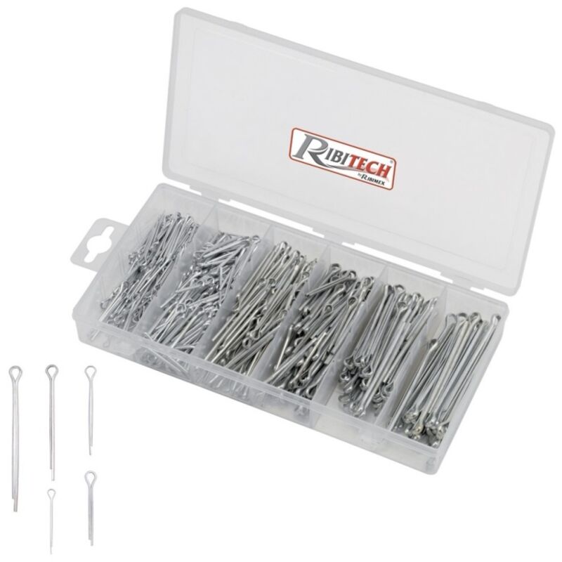 Assortimento copiglie da 555 pz Ribimex Pratico assortimento di copiglie da 555 pz, fornite in una pratica valigetta di trasporto, da riporre comodamente nella tua cassetta portattrezzi. Contenuto dell'assortimento: Dimensioni: 1,5ø x 25 h mm 2,5ø x 25 h mm 3,0ø x 32 h mm 2,5ø x 38 h mm 3,0ø x 50 h mm 4,0ø x 64 h mm