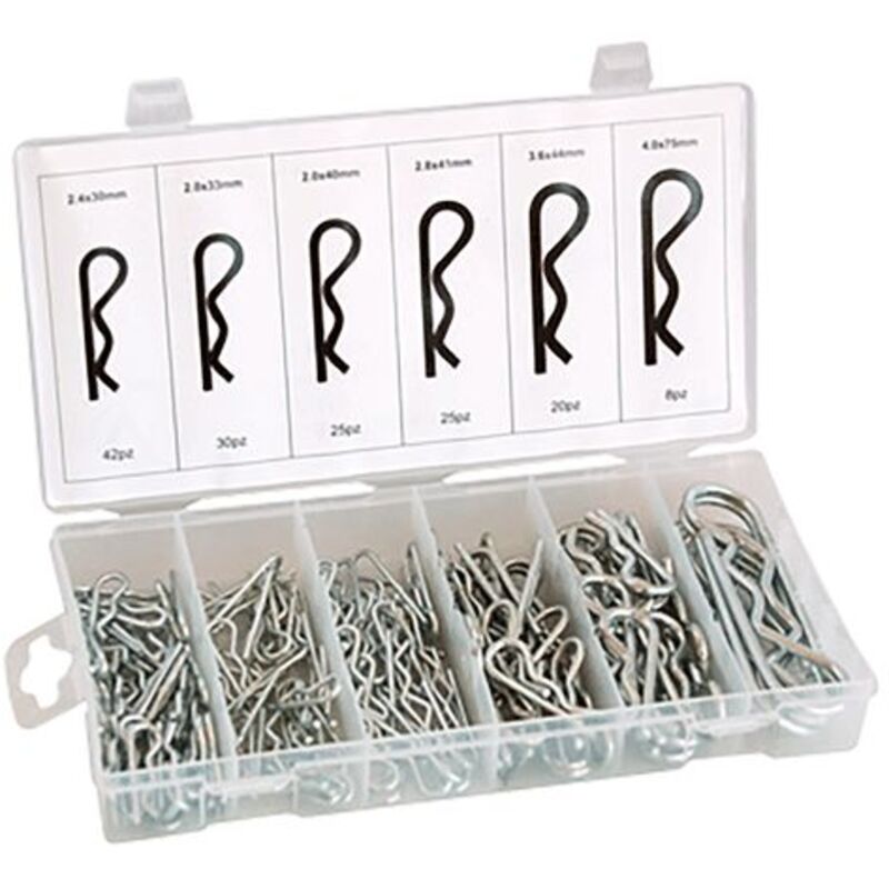 Realizzate in acciaio. Composizione: 42 pezzi 2,4x30 mm, 30 pezzi 2,0x33 mm, 25 pezzi 2,0x40 mm, 25 pezzi 2,8x41 mm, 20 pezzi 3,6x44 mm, 8 pezzi 4,0x75 mm. In cassetta plastica.