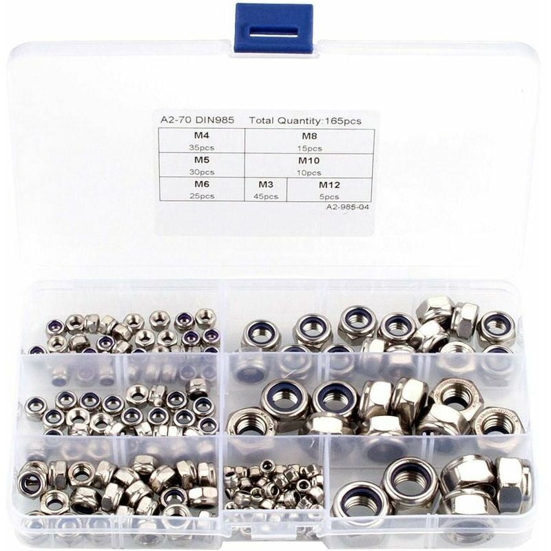 Realizzato in acciaio inossidabile 304, durevole, resistente alla corrosione, elevata durezza 7 dimensioni comuni per uso generale, tra cui: M3, M4, M5, M6, M8, M10, M12;uso generico, ideale per professionisti e hobbisti Il controdado con inserto in nylon è dotato di un sistema integrato in nylon che afferra i bulloni per impedirne l'allentamento Il collare in nylon può impedire ai bulloni di fuoriuscire per una presa più sicura e duratura Specifiche: Materiale: acciaio inossidabile 304 Dimensioni Dimensioni filettatura: M3, M4, M5, M6, M8, M10, M12 Peso: 430 g Colore: argento Contenuto della confezione 45 dadi di bloccaggio x M3 35 pezzi Dado di bloccaggio x M4 30 Dadi di bloccaggio x M5 25 Dadi di bloccaggio x M6 15 Dadi di bloccaggio x M8 10 Dadi di bloccaggio x M8 x M10 5 dadi di bloccaggio x M12