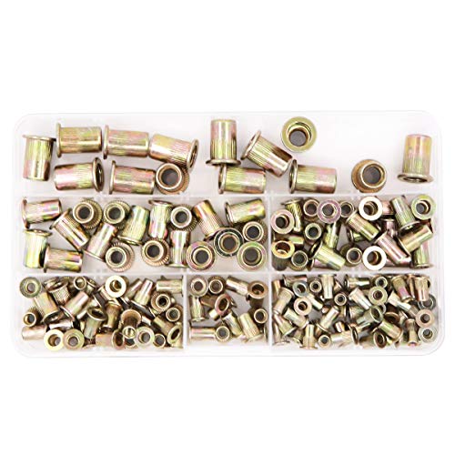 Assortimento di Dadi Filettati con Testa Piatta Rivetti Filettati in Acciaio al Carbonio, Misura M3, M4, M5, M6, M8, 165 Pezzi