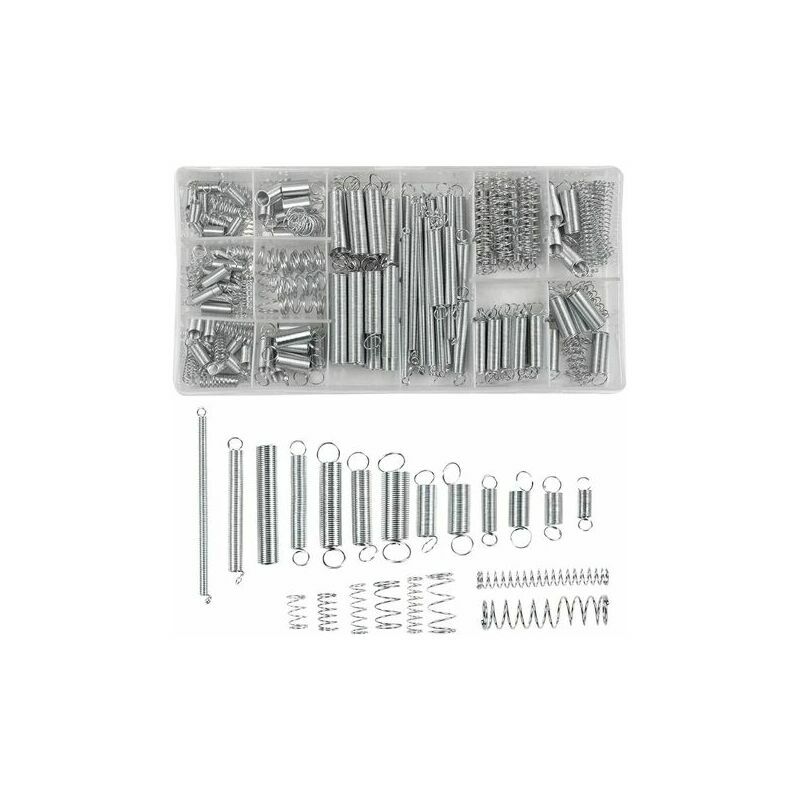 Materiale di alta qualità - : le nostre molle di tensione sono realizzate in acciaio zincato, robusto ed elastico che fornisce una durata extra con la giusta quantità di tensione, non facile da arrugginire. [Varie dimensioni]: Offriamo 12 dimensioni delle molle a trazione e 8 dimensioni delle molle a compressione per soddisfare le diverse esigenze. Tutti i tipi di molle ti permettono di trovare sempre quella giusta. [Tipi ovvi]: queste molle sono chiaramente classificate in una scatola di immagazzinaggio in modo da poter trovare rapidamente le molle che desideri durante e dopo l'uso. Inoltre, il coperchio della scatola ha incluso una pratica guida con elementi visivi. Non dovrai più perdere tempo. [Ampiamente usato]: il kit di sostituzione della molla di tensione del filo d'acciaio include molle di compressione ed estensione, adatte per strumenti e attrezzature, utensili manuali, automobili, mobili, pezzi di ricambio, ecc. [Prodotto ideale]: un materiale essenziale per varie
