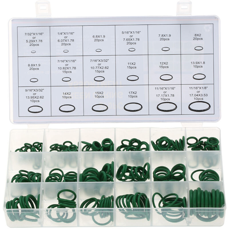Caratteristiche: Gomma nitrilica butadiene idrogenata (HNBR), nota anche come nitrilica altamente saturi (HSN) e una speciale classe di gomma nitrilica (NBR), HNBR puo essere formulata per soddisfare temperature di applicazione comprese tra -45 gradi C e 165 gradi C e HNBR e classificata da ASTM come polimero di tipo DH. Gli anelli in gomma per impieghi gravosi sono disponibili per l'uso in applicazioni che richiedono una maggiore resistenza agli agenti chimici e temperature piu elevate rispetto all'NBR. Il set di assortimenti di o-ring e imballato da una custodia in plastica trasparente con chiusura a scatto e scomparti per l'identificazione. 270 pezzi in un caso totalmente e 18 tipi di O-ring in base alle dimensioni. Adatto per rimpiazzare, rifornire, attrezzi, automobilistico, garage, idraulico, meccanico, officine, riparazioni, collegamenti aria e gas professionali. Specifica: 20 pezzi 7/32 "x 1/16" 20 pezzi 1/4 "x 1/16" 20 pezzi 6.8x 1.9 20 pezzi 5/16 "x 1/16" 20 pezzi 7,8 x 1,9