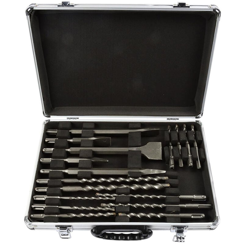 Set Di Punte E Scalpelli Sds Plus 17pz Il Set Include 12 Punte: 5x110, 6x110, 8x110, 10x110, 6x160, 8x160, 10x160, 12x160, 8x210, 10x210, 12x260, 14x260 Mm Scalpelli A 2 Punte: 140x20, 250x20 Mm 3 Scalpelli Piatti: 250x20, 140x21, 250x40 Mm Custodia Per Soffiaggio