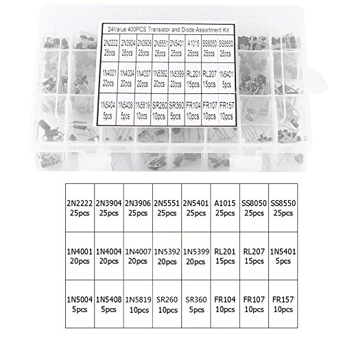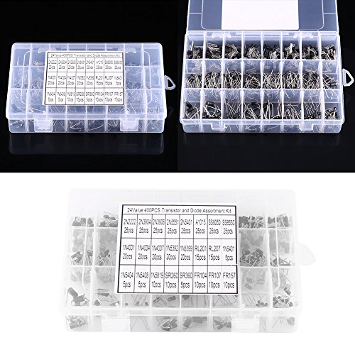 Kit Assortimento Transistori Diodi NPN PNP Bassa Potenza da 400pz 24 Valori di 2N2222-FR157 con Scatola di Immagazzinaggio,Transistore di Recupero Veloce per Controlla o Corregge la Corrente