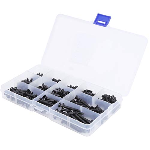 Set assortimento di viti autofilettanti, 330 pezzi Kit viti per legno in metallo con esagono incassato piatto svasato, Kit assortimento di chiodi per pannelli neri Utensili manuali Accessori hardware