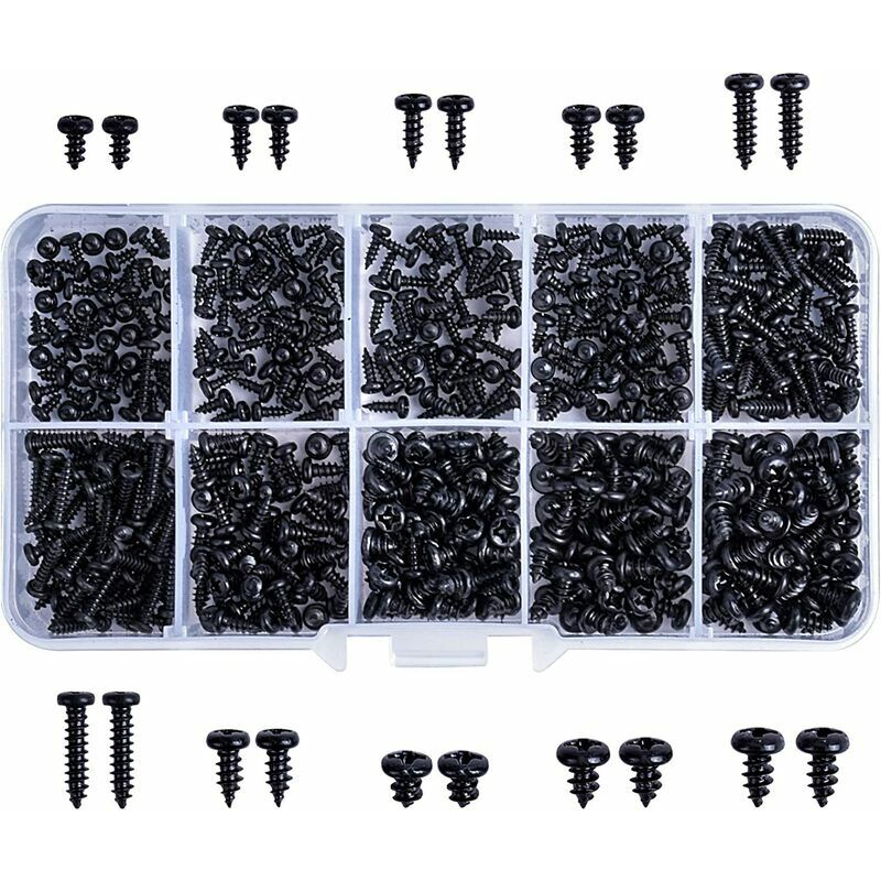 10 code:: 500 viti autofilettanti a testa Phillips. M2 x 4mm/5mm/6mm, M2.3 x 5mm/8mm/10mm, M2.6 x 6mm, M3 x 4mm/5mm/6mm, ogni coda contiene 50 pezzi. Materiale:: Tutte le viti i kit sono realizzati in acciaio al carbonio, con finitura in ossido nero, resistente alla ruggine e alla corrosione anche in ambienti umidi. Shapp Tip:: Queste viti autofilettanti a punta affilata possono facilmente perforare il muro e la punta acuminata consente per una svasatura rapida e semplice, adatta a casa, ufficio o industria.fessura trasversale standard, forza uniforme, facile da bloccare, non facile da scivolare, più veloce e più comodo da usare. Comoda conservazione:: noi vieni con una scatola di immagazzinaggio trasparente con informazioni dettagliate sulle dimensioni s. La scatola può tenere in ordine la tua scrivania o farti trovare rapidamente la coda di cui hai bisogno