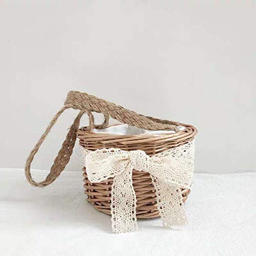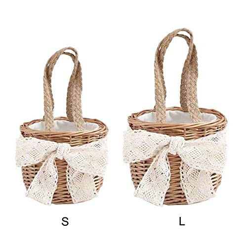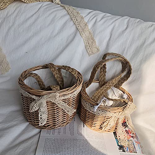 ASSR 2PCS Rattan Flower Basket Tote Bag,Cestini tessuti con fiocco macramè, Cesto rustico in rattan da sposa fiore ragazza, cestino uova di Pasqua