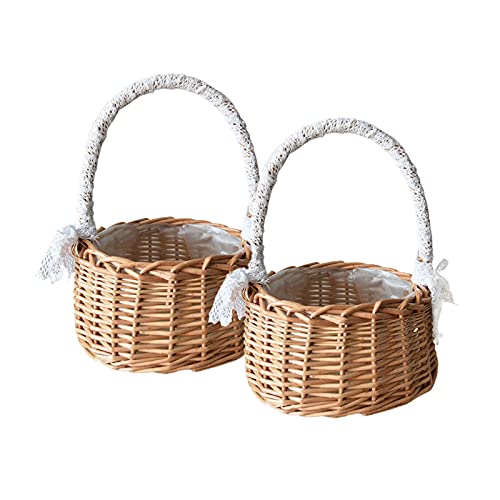 ASSR 2 cestini portaoggetti in tessuto con manico e nastro, cestini per fiori da sposa, in rattan di vimini, per decorazioni per la casa e il giardino, formato A2