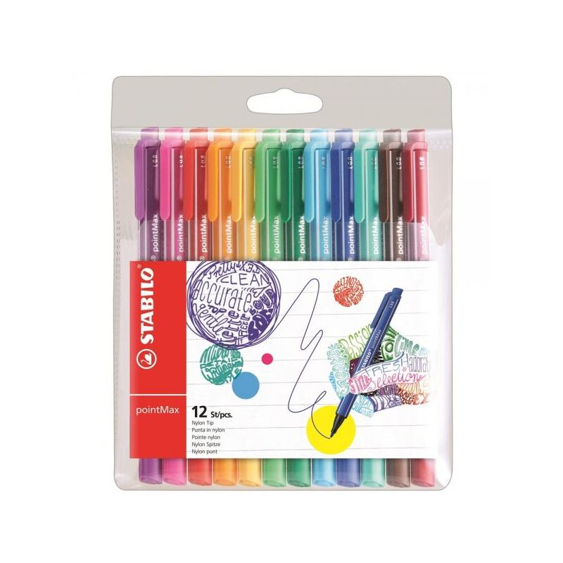 STABILO pointMax è una nuova penna con punta a tratto medio in nylon. Perfetta per scrivere e colorare. La punta resistente in nylon e i 24 colori diversi fanno volare la tua creatività. Asciuga in fretta e non lascia sbavature.