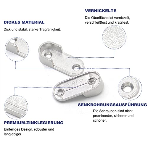 Asta Armadio Supporto, 15 mm Nichelato Argento, Prese per Aste Appendiabiti Ovali con 20 Viti, 10 Pezzi