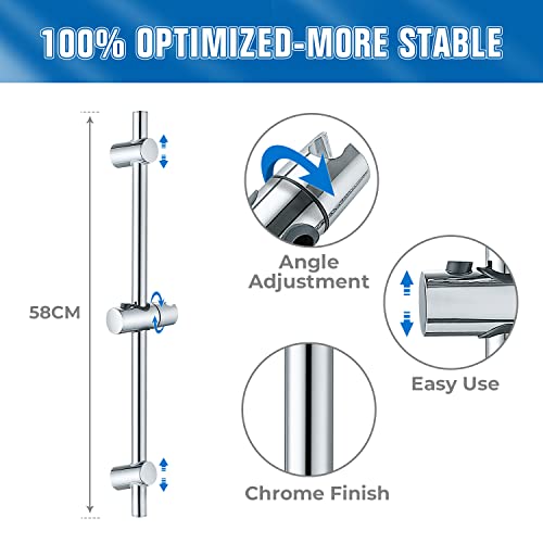 Regolazione gratuita: il telaio dell'ascensore per doccia adotta il design della manopola, il design rotante a 360°, efficiente e stabile, l'asta della doccia scorrevole è facile da usare e l'altezza può essere regolata liberamente, adatta a tutti i membri della famiglia per fare la doccia.