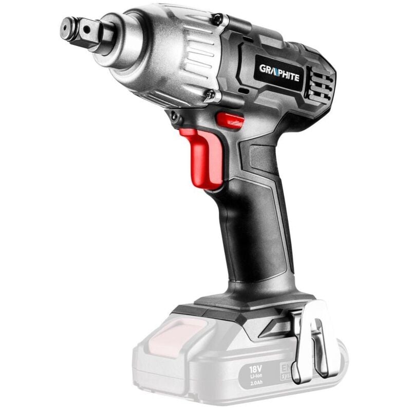 Dati tecnici: Dimensioni lorde (L x A x P): 20,00 x 8,50 x 22,00 cm Marchio: GRAPHITE Dimensioni attacco quadro: 1/2" Voltaggio della batteria: 18 V Coppia massima: 180 Nm1 Numero di batterie nel set: 0 pezzi . Tipo di batteria: Ioni di litio Numero di diodi: Avvitatore ad impulsi GRAPHITE da 1 pezzo, compatibile con batterie GRAPHITE Energy+ agli ioni di litio da 18 V e offre una coppia elevata (180 Nm). La coppia viene generata sotto forma di un impatto periferico a breve termine, quindi l'impatto del dispositivo sulle mani dell'operatore è piccolo, un tipo popolare di avvitatori ad impulsi. Il dispositivo è dotato di un freno motore elettrico che consente di arrestare rapidamente il mandrino, nonché di un'illuminazione a LED dell'area di lavoro la forma dell'impugnatura e la lunghezza complessiva ottimizzata della chiave consentono un lavoro efficace in tutte le condizioni.**Senza batteria e caricabatterie.