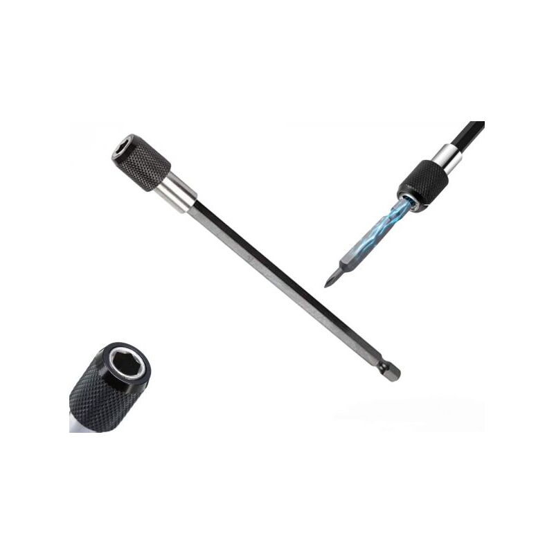 Il portainserti magnetico è compatibile con avvitatori a batteria e trapani. L'anello magnetico tiene ferma la vite, mentre il potente magnete permanente trattiene l'inserto. La lunghezza del prodotto è di 150 mm. La confezione contiene: Nr.1 Porta inserti magnetico da 150mm