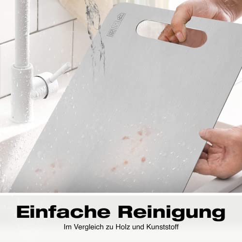 Astano XL - Tagliere in acciaio inox massiccio, di alta qualità, antibatterico, 39 x 28 cm