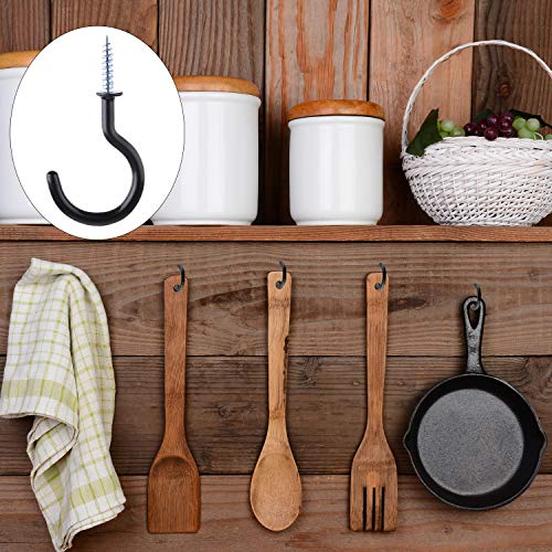 ASTARON 10 pezzi 2 Pollici Ganci Avvitabili, Ganci a Vite Rivestiti in Vinile Ganci a Tazza in Metallo Ganci a Soffitto per Appendere, Nero