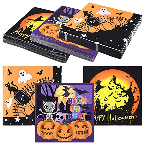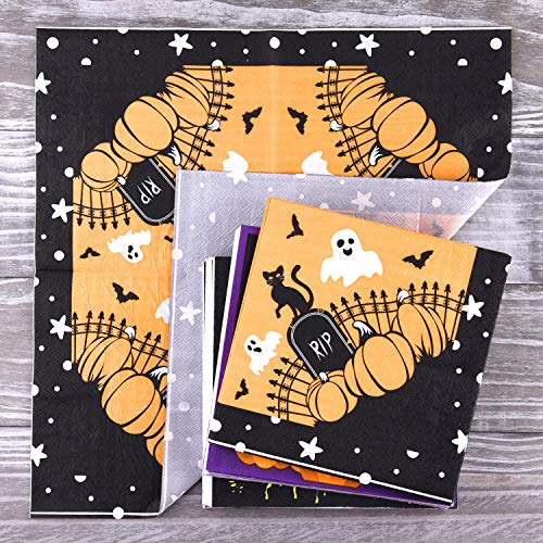 ASTARON 60 pezzi di tovaglioli di Halloween 13 "× 13", tovaglioli di carta usa e getta per articoli per feste di Halloween, 3 disegni di tovaglioli a tema di Halloween