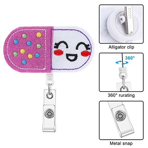 Stile interessante: bobina per badge infermiera progettata a forma di pillola, benda e siringa, tutti hanno espressioni carine, accattivante ed elegante, adatto per medici e infermieri, può far sentire le persone rilassate dopo averle viste