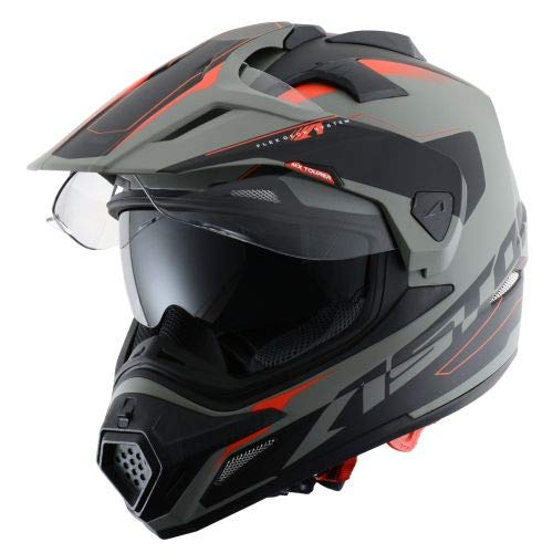 Astone Helmets - CROSS TOURER GRAPHIC ADVENTURE - Casque de motocross homologué en polycarbonate - Casque intégral polyvalent, 3 en 1 enduro route et trail - Matt grey/black XL