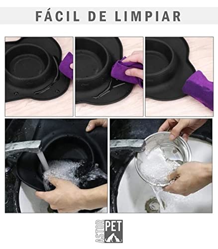 Astorpet | Mangiatoia per Cani e Gatti - Animali Domestici - Doppia Ciotola in Acciaio Inox. Base/vassoio in silicone antiscivolo. Abbeveratoio: cibo e acqua. Piatti rimovibili. Grigio medio