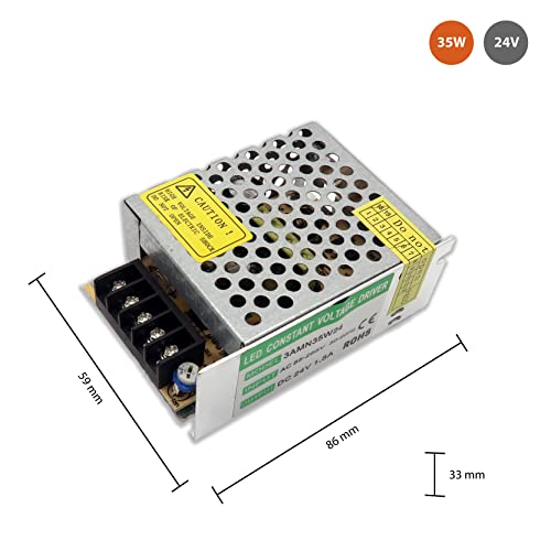 AstraLed - Alimentatore Trasformatore LED Driver Tensione Costante 24V 35W 1,5A con uscita in Tensione Costante. Ideale per strisce a Led.