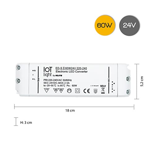 AstraLed - Trasformatore Alimentatore LED Driver 24V 60W con uscita in Tensione Costante. Ideale per Strisce Led