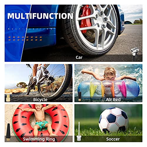 Facile da usare: inserire la spina nell'accendisigari da 12 V dell'auto e collegare il tubo al pneumatico di veicoli, SUV, motori, biciclette per il gonfiaggio. Nota: il mini compressore portatile non è compatibile con gonfiabili ad alta pressione oa grande flusso.