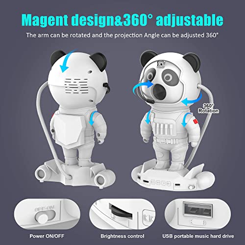 [Aspetto unico]: Galaxy Proiettore ha la forma di un simpatico panda astronauta. Il proiettore di stelle è realizzato con materiali ABS e PC. Sicuro, innocuo e robusto. Il proiettore di stelle è collegato magneticamente. E il braccio del proiettore può essere ruotato in modo da poter posare nella posizione desiderata.