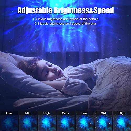 [Telecomando e musica Bluetooth]: Il Cielo Stellato Lampada si controlla tramite un telecomando. Il proiettore di stelle è collegato al telefono cellulare tramite Bluetooth. È possibile riprodurre la propria musica preferita e collegare una chiavetta USB per riprodurre la musica. Il proiettore di luce cambierà a ritmo di musica. Aiuta voi e il vostro bambino a dormire meglio