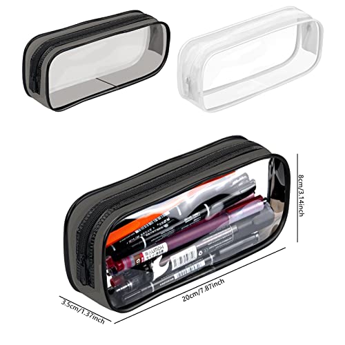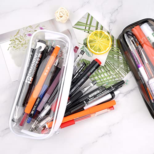 Astucci Portamatite Trasparente 2 Pezzi Astuccio PVC Impermeabili Sacchetto di Matita Trasparente Custodia per Cosmetici con Cerniera Borsa Multifunzionale Astuccio Trasparente (Nero e Bianco )