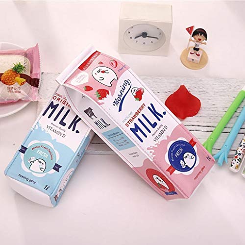 Astuccio Fablcrew a forma di cartone del latte, astuccio in poliuretano con cerniera per ufficio e scuola 20*5*6 cm pink