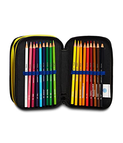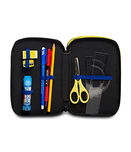 Astuccio 3 ZIP INTERN, BACKOF THE NET, Blu e Nero, Completo di Matite, Pennarelli etc,Scuola & Tempo Libero