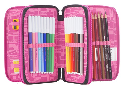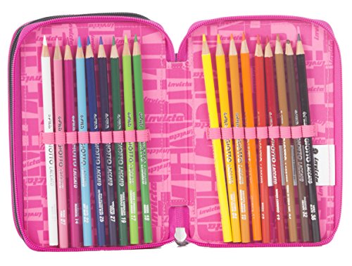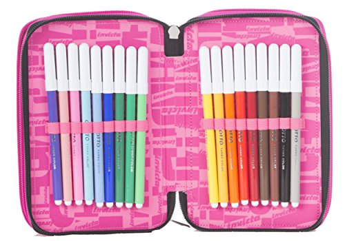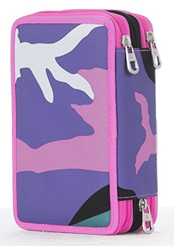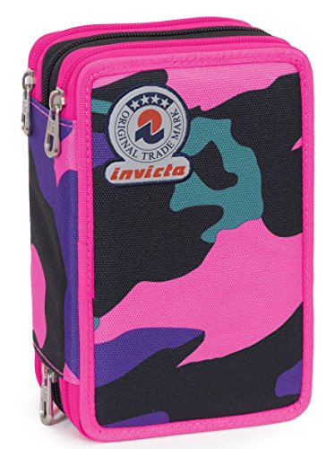 ASTUCCIO 3 ZIP - INVICTA - CAMOUFLAGE - Con penne, matite, pennarelli Rosa