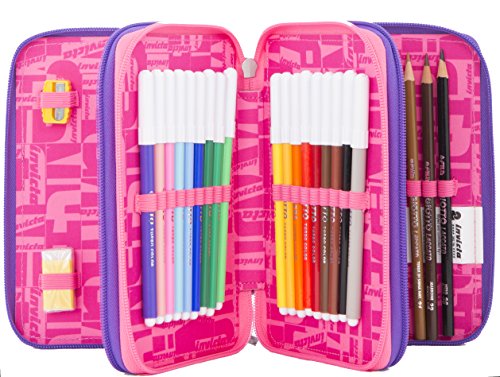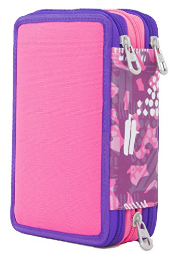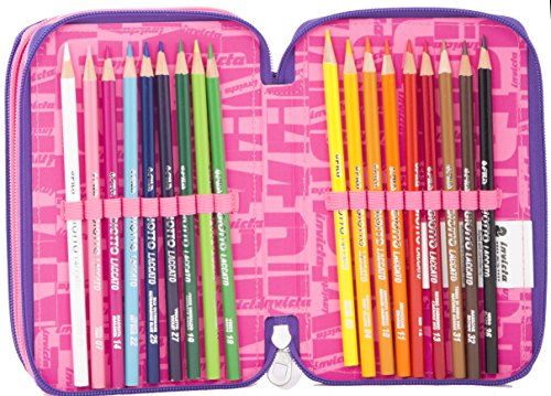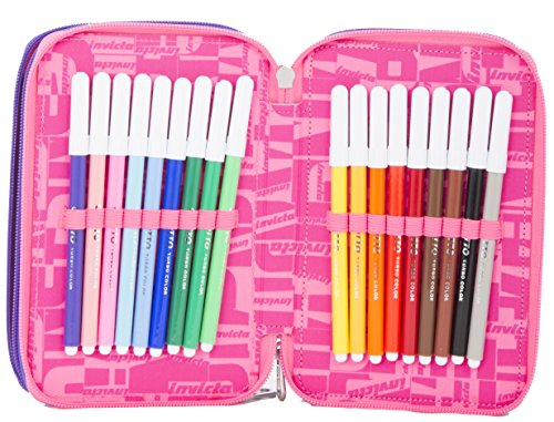 ASTUCCIO 3 ZIP - INVICTA - TRIANGLE - attrezzato con penne, matite, pennarelli Rosa, poliestere