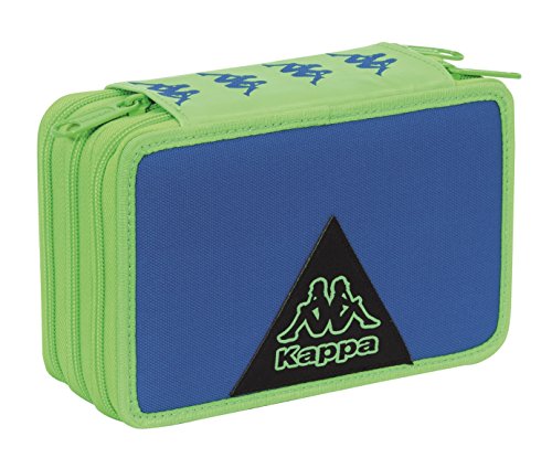 ASTUCCIO 3 ZIP KAPPA LOGO - attrezzato con penne, matite, pennarelli ... Blu Verde