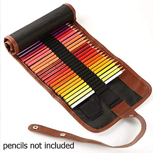 Astuccio per Matite, Sacchetto portamatite arrotolabile in tela e pelle Custodia per Riporre 48 Pastelli (Non include la penna)