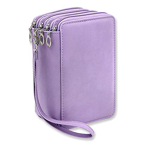 Astuccio per Matite, YFZYT PU Astuccio per 72 Colore Matite, Multifunzione Astuccio per Matite Astuccio per Grande Capacità Trucco Astuccio con Cerniera 4 Strati Senza Matita - Lila#2