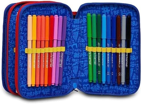 Astuccio 3 zip MITAMA per Scuola Elementare e Scuola Media | Con Materiale Scolastico - 47 Pezzi: Penne, Matite, Forbice, Colla, Righello (ASSORTITO GD)