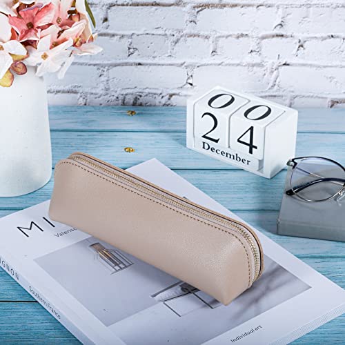 Astuccio in pelle, astuccio per penne e penne, unisex, per scuola e ufficio, regalo per il ritorno a scuola, colore: cachi
