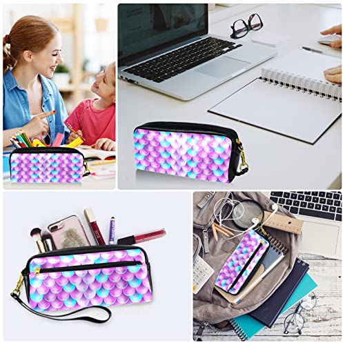 Astuccio per penne a forma di sirena in pelle PU con cerniera per ragazzi ragazze scuola e ufficio forniture, Multi, 20.5x5x8.5cm/8.1x2x3.3in, Organizer per borse