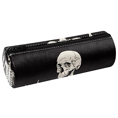 Astuccio per penne in pelle con scheletro umano in posa astuccio per matite portamonete borsa per trucco cosmetico per studenti cancelleria scuola ufficio stoccaggio