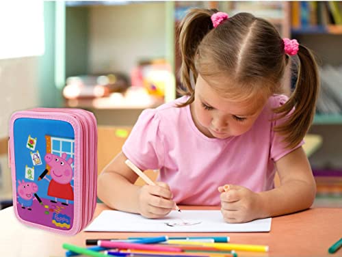 Astuccio Peppa Pig A Tre Scomparti. Colore Rosa. 44 pezzi
