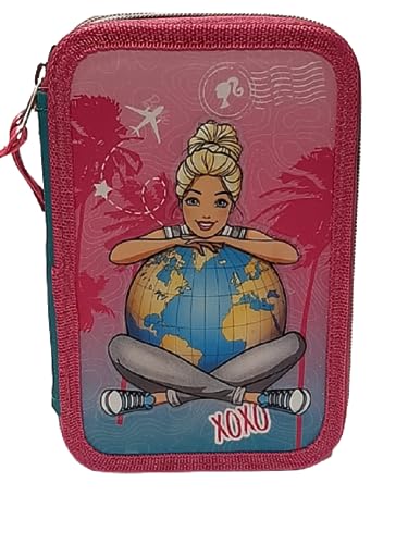 FCP Astuccio 2 piani compatibile con Barbie Sweet Rosa per la scuola contiene 28 pezzi + omaggio portachiave paillettes e penna colorata
