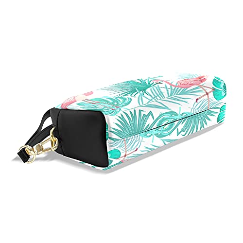Astuccio portamatite, motivo fenicottero con foglie di palma stampato, grande capacità, impermeabile, in pelle, 2 scomparti per ragazze, ragazzi, donne e uomini