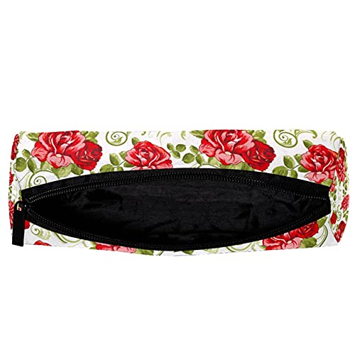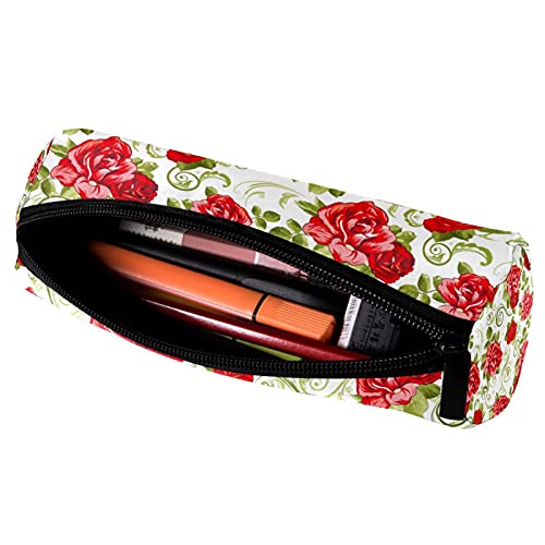 Astuccio portapenne con rose rosse e fiori e foglie, astuccio per cancelleria da scrivania, organizer per trucchi, per scuola e ufficio