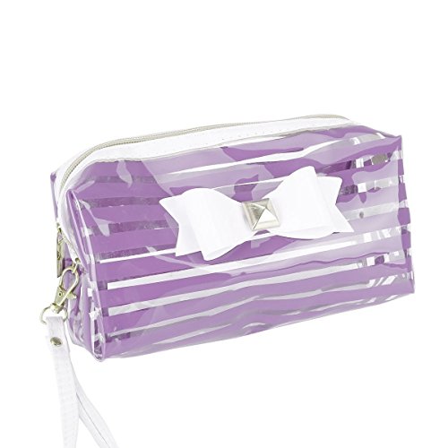 Astuccio da ragazze, in PVC trasparente con motivo a righe e fiocchetto, impermeabile, portapenne per la scuola, portamatite da ragazze, astuccio per cancelleria, busta per trucchi, borsetta per cosmetici, da donna Purple