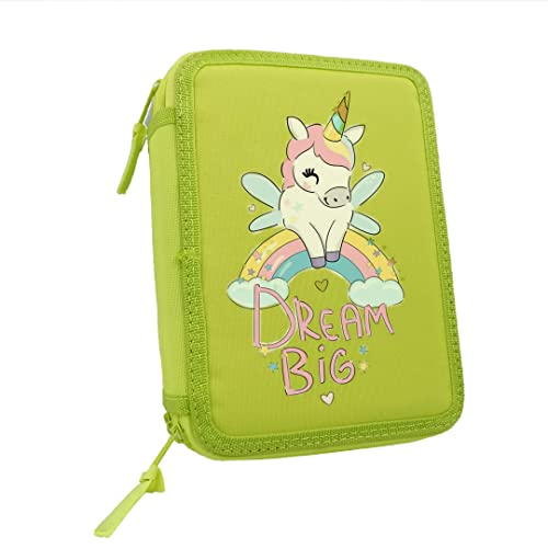 Astuccio Scuola 3 Zip Completo di 33 Pezzi con nome Bambina Astuccio portatutto Portapastelli Unicorno Colorato Completo di Penne Pastelli Pennarelli Righello Temperino Gomma Taccuino