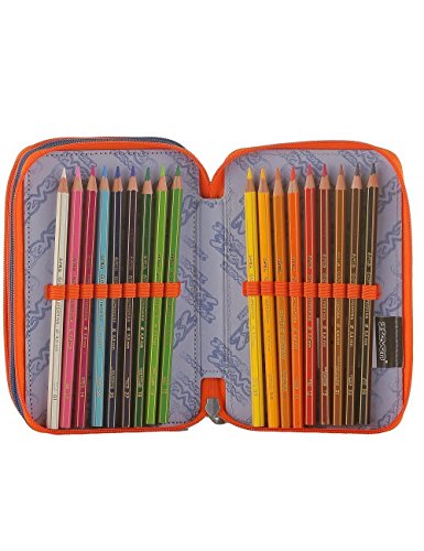 Astuccio 3 zip scuola completo seven rebel boy bambino colori blu e verde