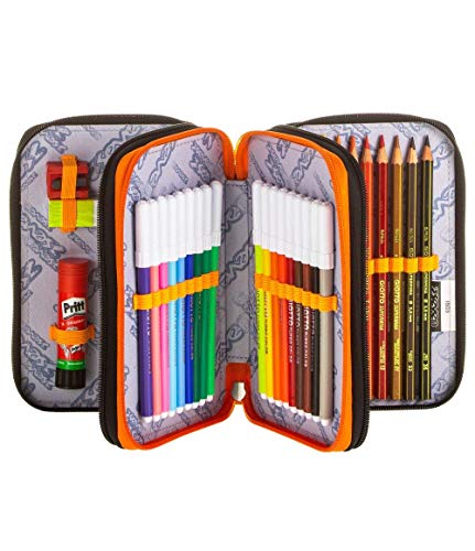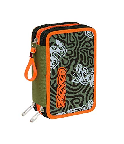 Astuccio Scuola Completo 3 Zip Seven Totem Colore Verde Arancione