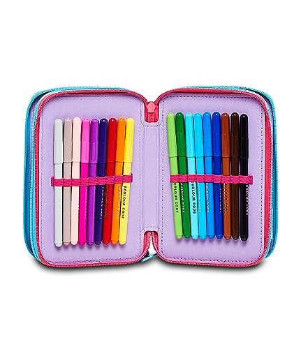 Astuccio Scuola Elementare 3 Scomparti - LILO & STITCH MY ALIEN PAL - DISNEY, Blu - Contenuto 43 pz - Completo di Matite, Pennarelli etc.- Portapenne Scuola Bambina Elementari